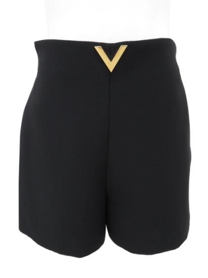 VALENTINO Vゴールド クレープクチュールショートパンツ ブラック 38 '22年 新品同様【中古】