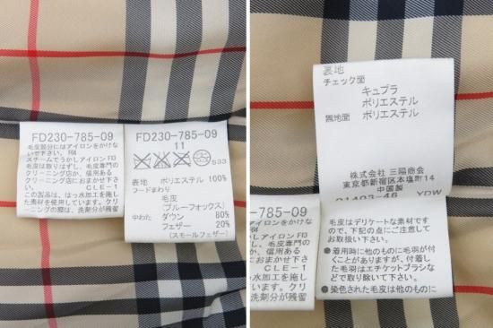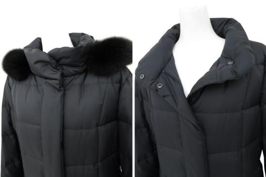 BURBERRY LONDON フォックスファー付きダウンコート ブラック 11 A1【中古】