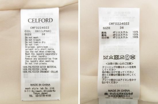 CELFORD ボウタイプリーツワンピース ライトピンク 36 '22年 新品同様【中古】