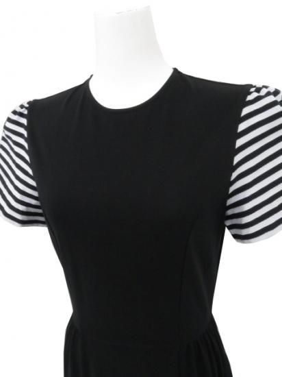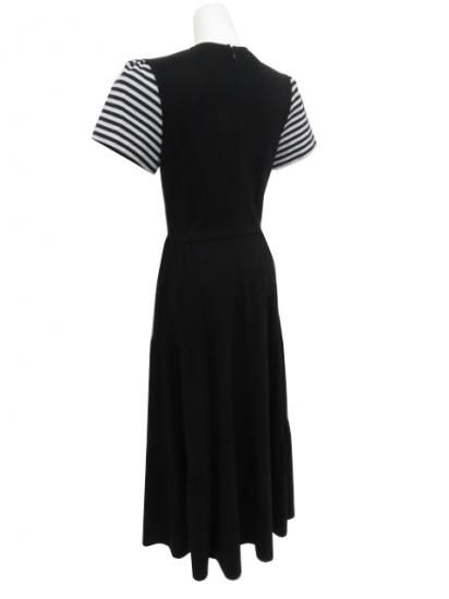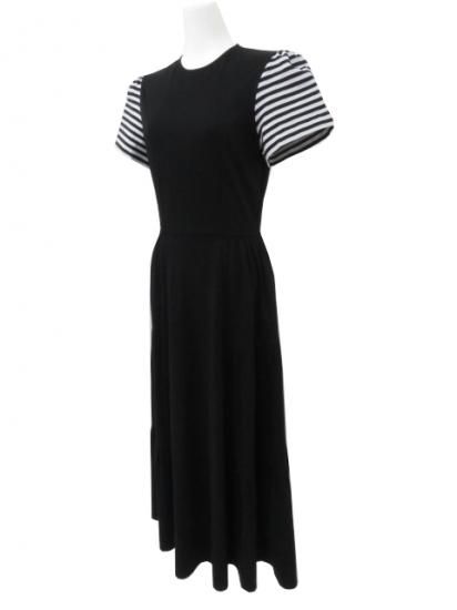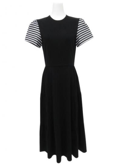 BORDERS at BALCONY ボーダースリーブティードレス ブラック 36 '23年SS A1【中古】