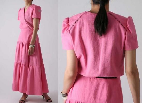 BORDERS at BALCONY コットンタックショルダーレースリゾートブラウス+リゾートティアードスカート セット売り ピンク 36 '20年SS 未使用【中古】