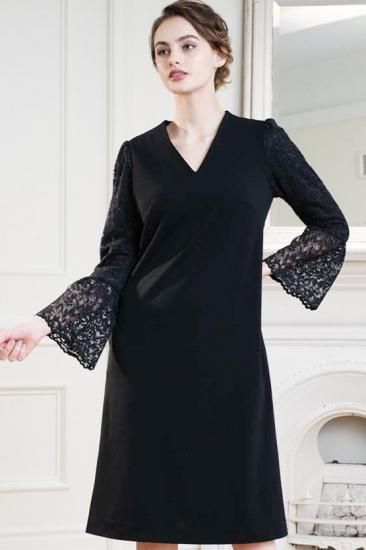 kay me レース袖サックワンピース ブラック JP7 A1【中古】