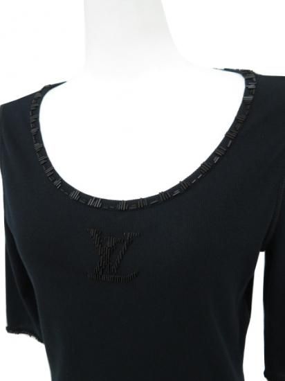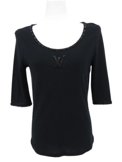 LOUIS VUITTON ビーズ LVロゴ入り トップス ブラック XL A1【中古】
