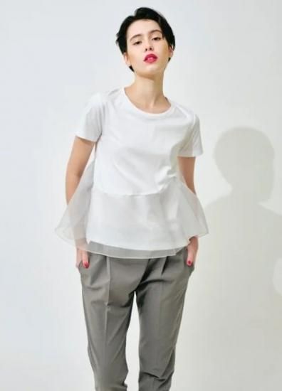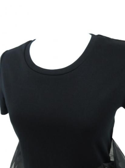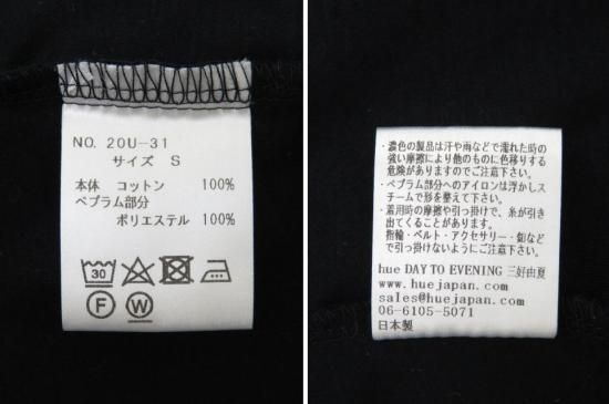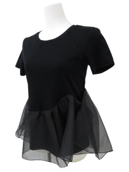 hue DAY TO EVENING オーガンザぺプラムTシャツ ブラック S '20年 A1【中古】