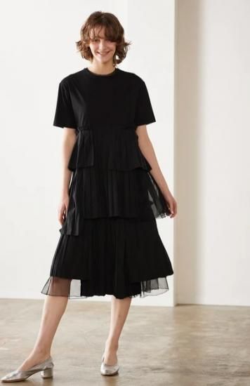 MARILYN MOON ラッフルプリーツレイヤードドレス ブラック A1美品【中古】
