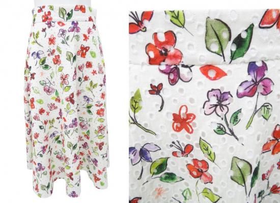 Rene ブルーミングフラワートップ&スカート ホワイト×フラワープリント 34 '22年 A1【中古】