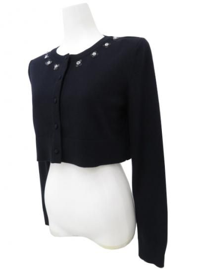FOXEY BOUTIQUE ビジューカーディガン 44395 ミッドナイトブルー 38 '24年 新品同様【中古】