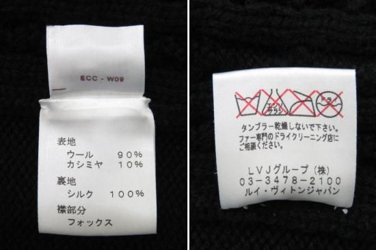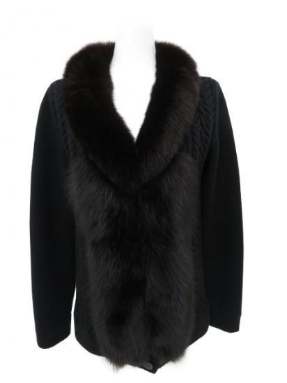 LOUIS VUITTON フォックスファー付き ウールカシミヤニットカーディガン 【ファー】 ブラック L A1【中古】