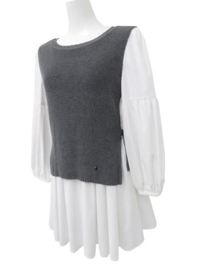 TO BE CHIC ブラウスレイヤー ニットチュニック ホワイト×グレー 38 '23年秋冬 A1美品【中古】