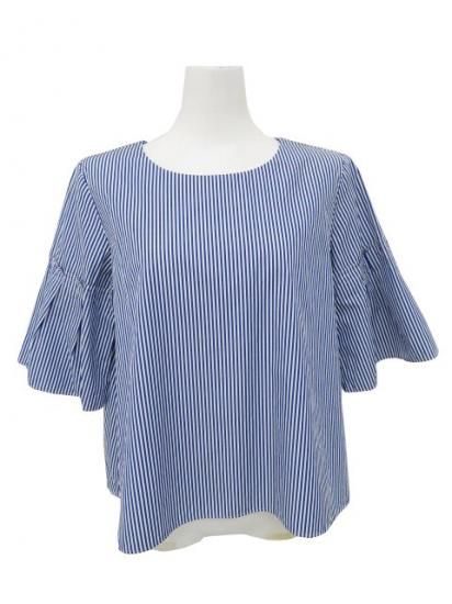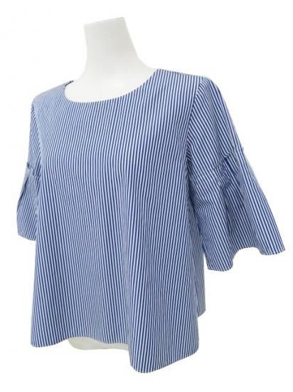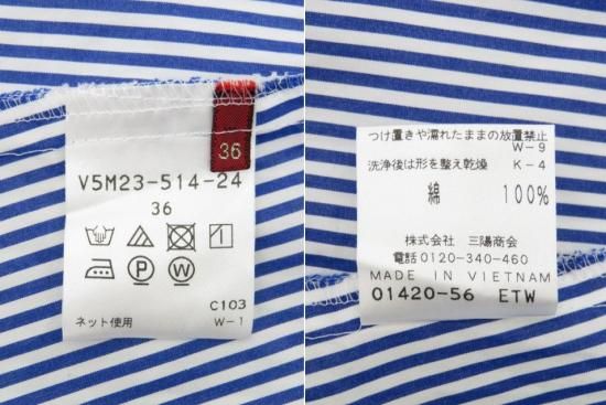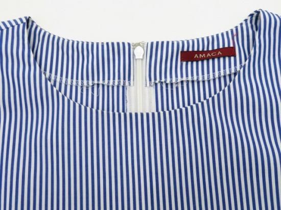 AMACA ストライプ トップス ブラウス ブルー×ホワイト 36 A1【中古】