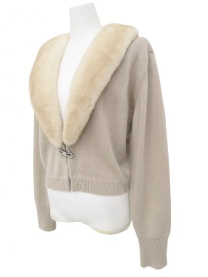 FOXEY BOUTIQUE カーディガン ヴィヴィエ 【ファー】 39197 ナチュラル 40 '18年 A1【中古】