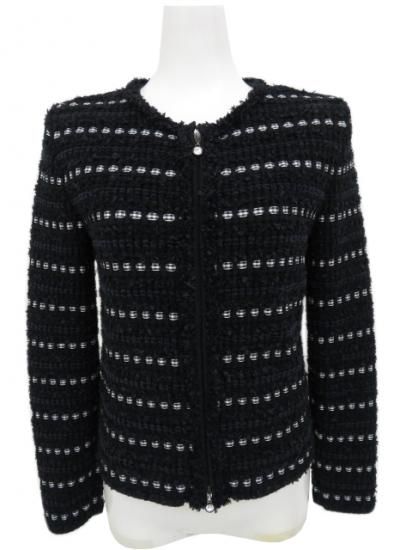 Rene ツイードニットカーディガン ブラック×ネイビーMIX 34 '22年 A1【中古】