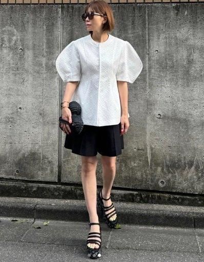 未使用 FOXEY BOUTIQUE スカート ラフィネ 42695 ブラック×ホワイト 42 '22年