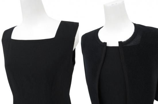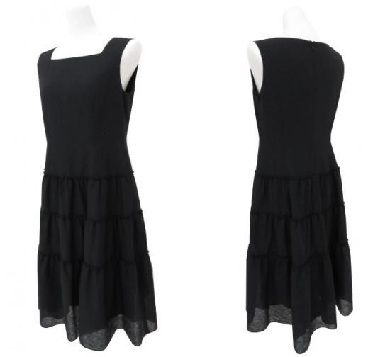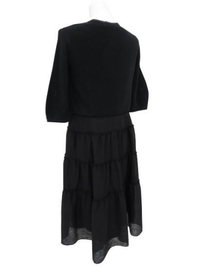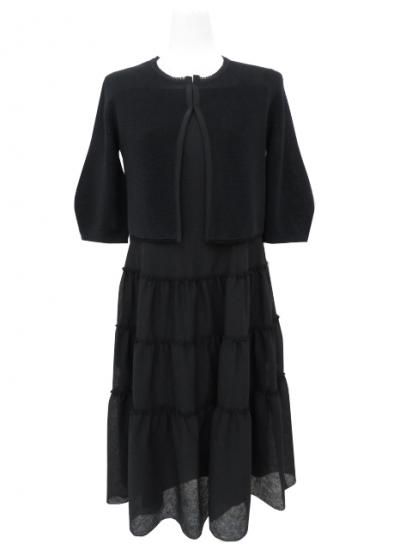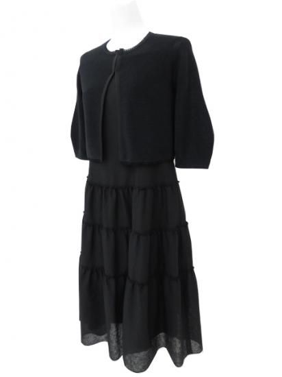 Jolie mignon ホールガーメント和紙ピコレース7分袖パフスリーブボレロ+ワッシャーボイルエレガントティアードワンピース ブラック 36/38 未使用【中古】