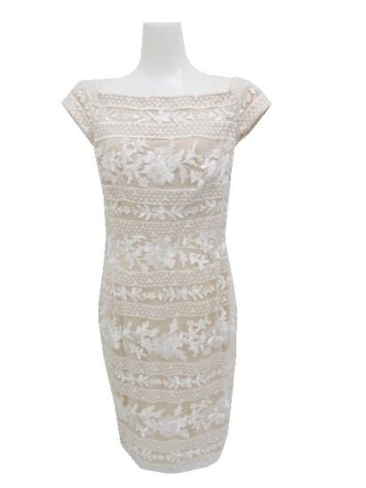 TADASHI SHOJI オフショルダードレス ホワイト×ベージュ 中古A1