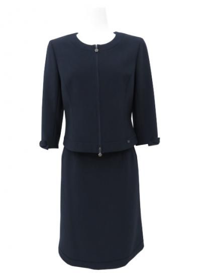 Rene basic ジップアップジャケット&スカート セットアップ スーツ ミッドナイトネイビー 34 '19年 A1美品【中古】