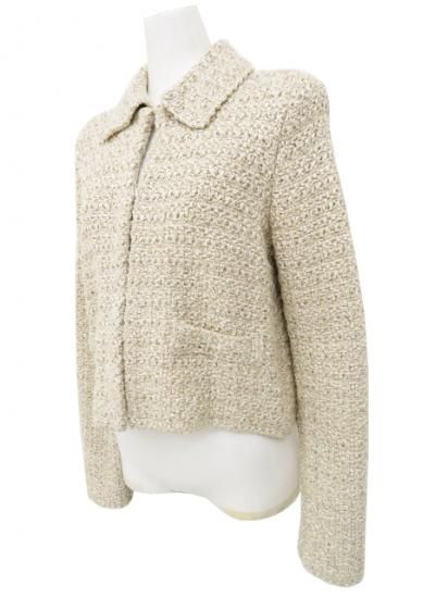 FOXEY BOUTIQUE ニットジャケット ノワゼット 42602 ベージュ×ホワイト 38 '22年 A1美品【中古】