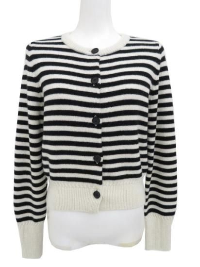 新品同様 FOXEY BOUTIQUE ニットカーディガン カシミヤフレンチボーダー 43173 アイボリー×ブラック 38 '22年