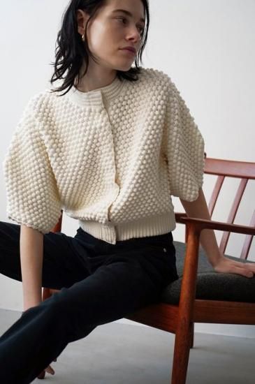 CLANE スリーディードット ハーフスリーブ ニット カーディガン ホワイト 1 '23年 A1【中古】