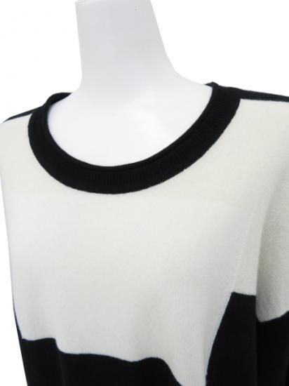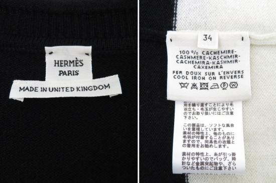 HERMES カシミヤ ニット プルオーバー ブラック×ホワイト 34 '21年 A1美品【中古】