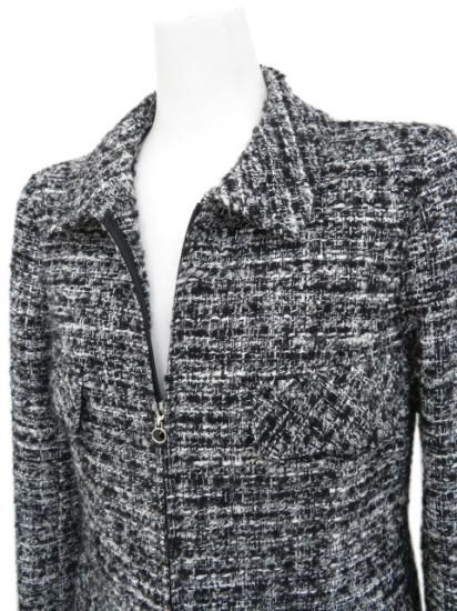 Rene ツイードロングコート ブラック×ホワイト×グレー MIX 38 ’21年 A1【中古】