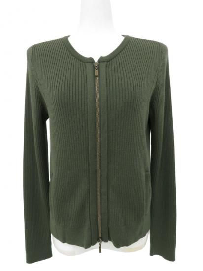 FOXEY BOUTIQUE ニットジャケット ジップアップリブ 41886 オリーブ 38 '21年 A1【中古】