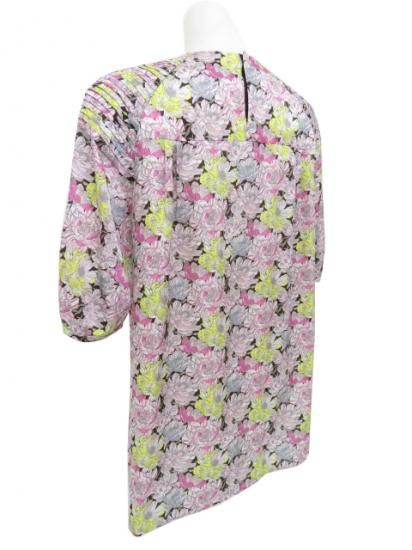 Drawer コットンシルク プリント タックブラウス ダークブラウン系×ピンク系×イエロー系 38 A1美品【中古】