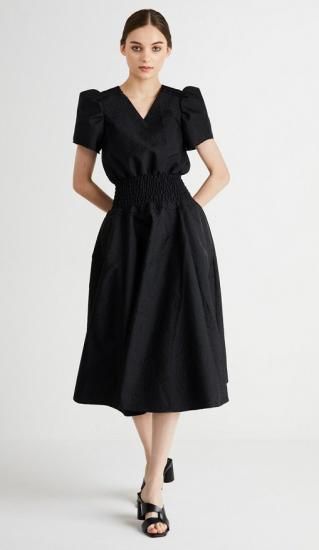 BORDERS at BALCONY ジャガードシャーリングドレス ブラック 36 '22年SS A1美品【中古】