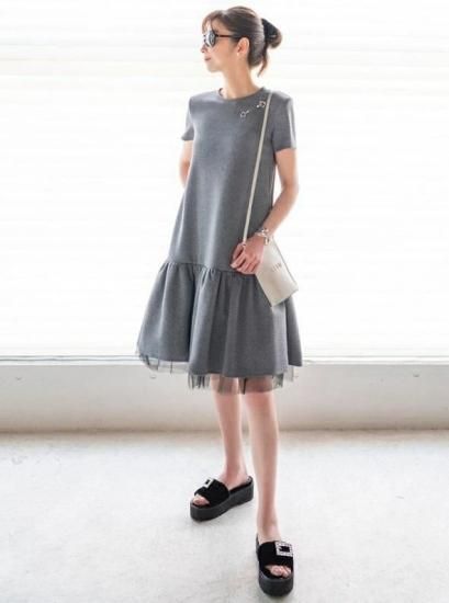 コメント ボディラインを拾わず、肌あたりも柔らかでストレスフリーな季語心地のス本ディッシュなジャージー素材。 エレガントな装いと快適な着心地を叶える 裾のフリルとチュールが華やかなストレスフリーワンピースです。1枚でスタイルが完結する半袖のデザインは、毎日のコーディネートに取り入れやすく、気になる二の腕をカバーしてくれます。 幅広い方にお召しいただけるAラインのシルエットで、フリル&チュールの繊細なデザインながら洗える機能性も装備。 フレア部分(切替下)のみ裏地あり。ファスナーなし。