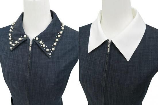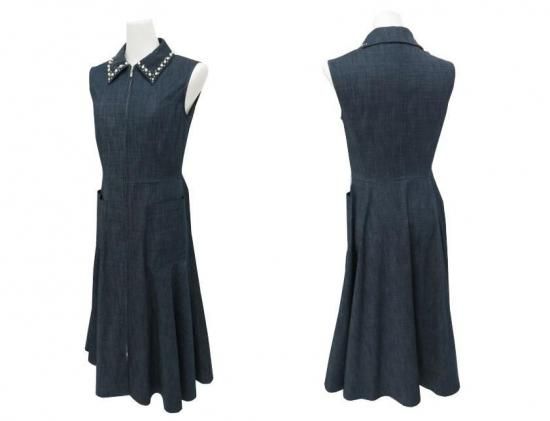 FOXEY NEW YORK ドレス ミレーヌ 襟取外しOK 42641 インディゴ 38 '22年 A1【中古】