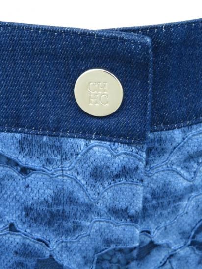 CAROLINA HERRERA レース ワイドパンツ インディゴブルー 2 A1美品【中古】