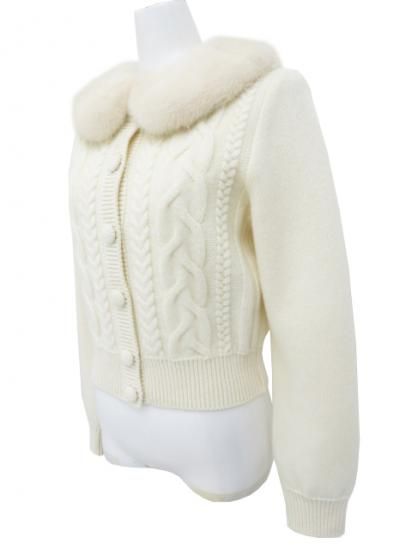 Rene ケーブルニットカーディガン 【ファー】 スノーホワイト 36 '24年 未使用【中古】