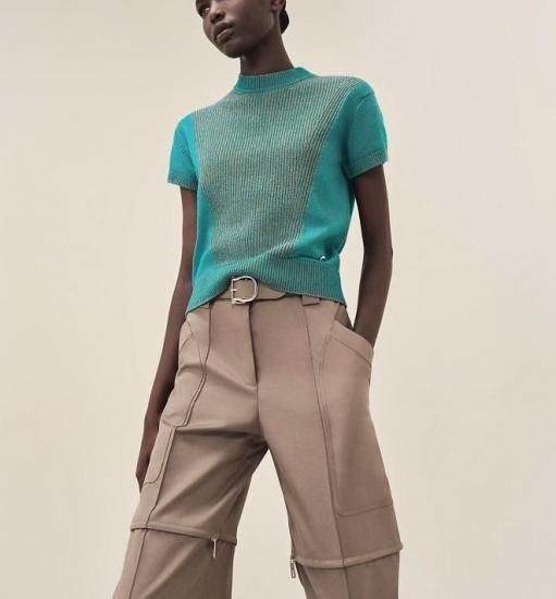HERMES カシミヤ ニット プルオーバー ブルー系×ブラウン系 36 ’23年AW 新品同様【中古】