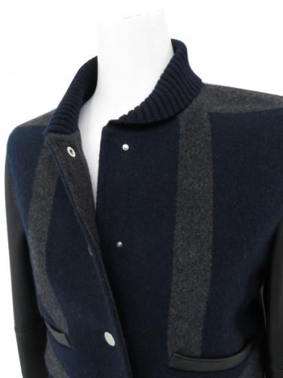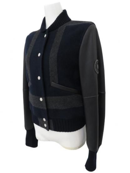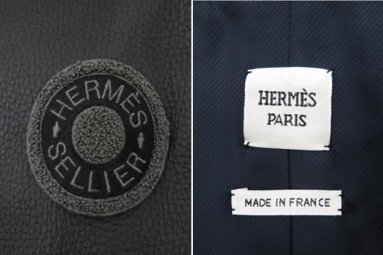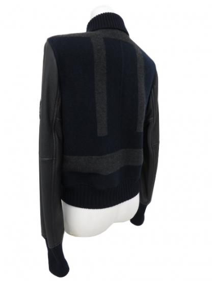 HERMES セリエ カシミヤ レザー ブルゾン 袖にセリエワッペン付き ネイビー×ブラック×グレー 34 A1美品【中古】