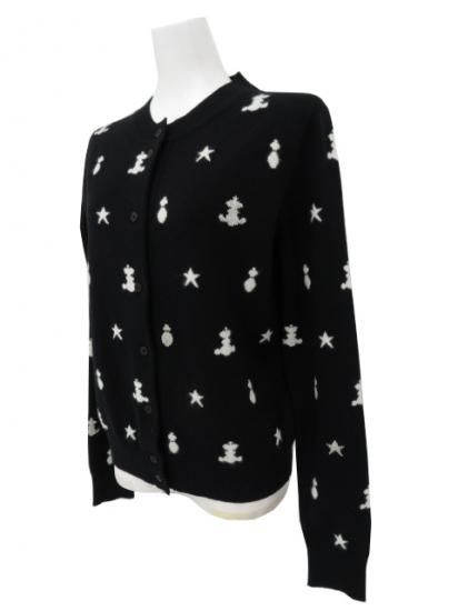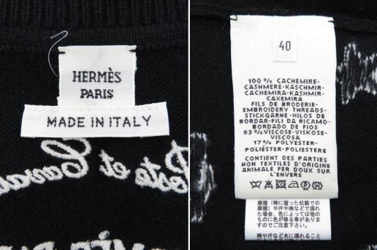 HERMES カーディガン ”Poste et cavalerie” サーベル飾り袋 ブラック×ホワイト 40 A1【中古】