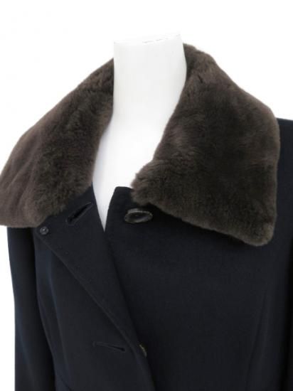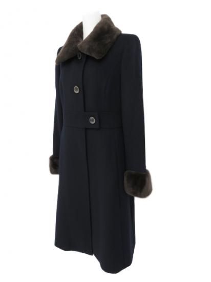 FOXEY BOUTIQUE コート スレンダーシェイプ 【ファー】 34820 ミッドナイトブルー 42 '15年 A1【中古】