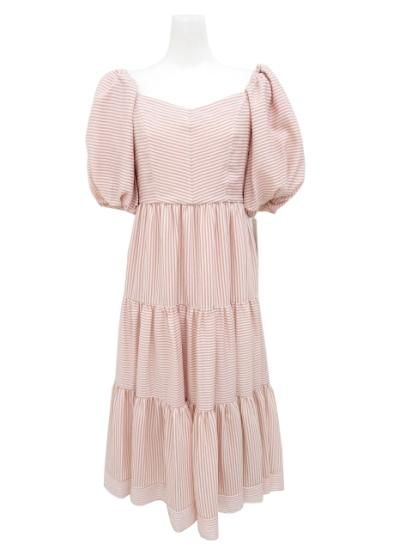 Estella.K ドビーボーダースウィッチングドレス ピンクベージュ系 F 未使用【中古】