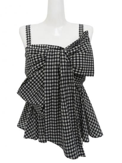 FRAY I.D ペプラム リボン トップス ブラック×ライトベージュ系 0 '24年 未使用【中古】