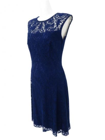 TADASHI SHOJI レースドレス ネイビーブルー系 2 未使用【中古】