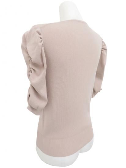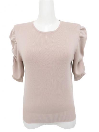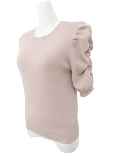 Aveniretoile ギャザースリーブ クルーネック ニット プルオーバー グレージュ 36 '24年 A1【中古】