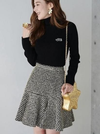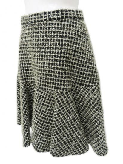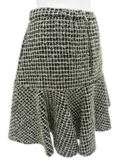 OBLI ゴールドツイード フレアスカート ブラック×ゴールド F '25年 A1【中古】