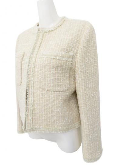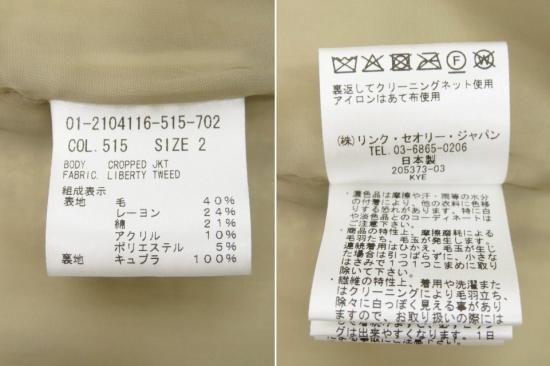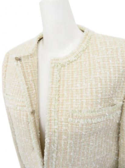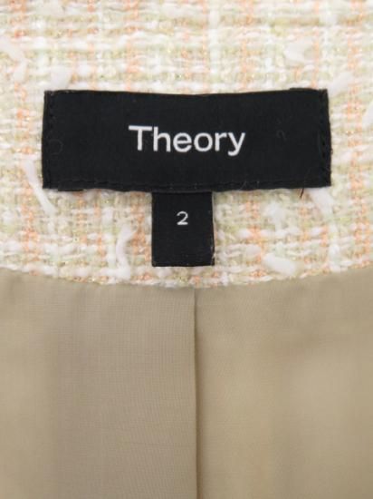 Theory/セオリー ツイードクロップドジャケット ライトグリーン系×オレンジ系×ホワイトMIX 2 中古A1