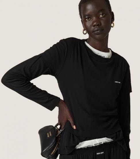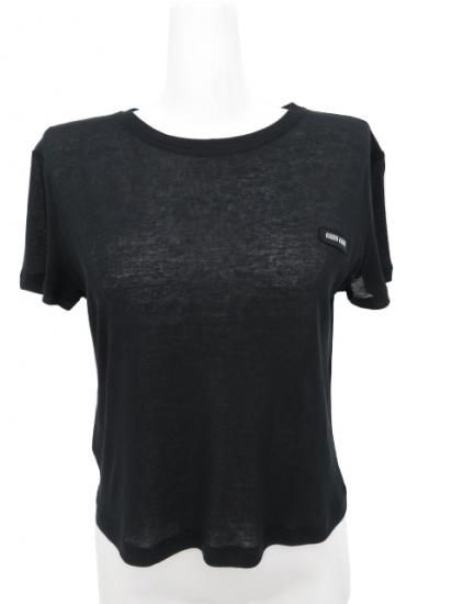 新品同様 miu miu/ミュウミュウ リブ編み ジャージー Tシャツ ブラック S '24-25年 HP現行