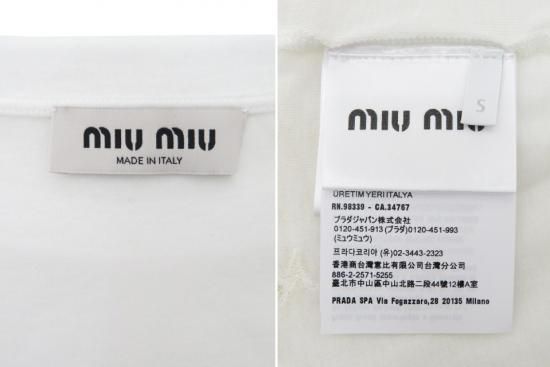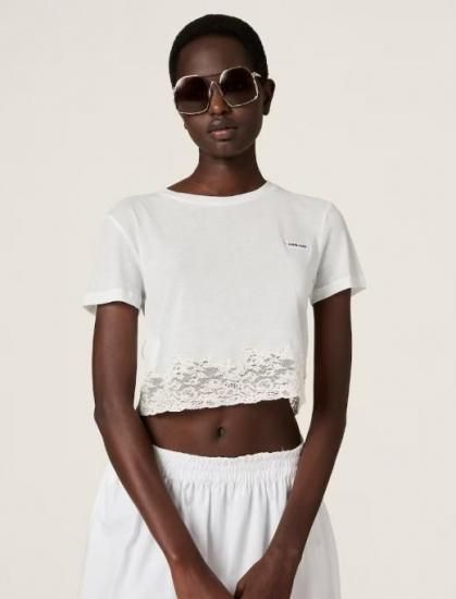 新品同様 miu miu/ミュウミュウ リブジャージー×レース Tシャツ ホワイト S '25年 HP現行