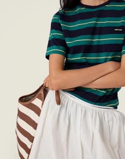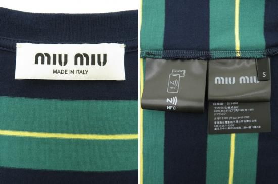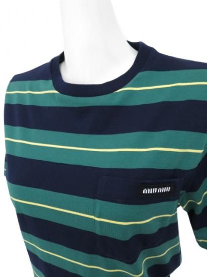 miu miu/ミュウミュウ ジャージー Tシャツ ビリヤードグリーン×ブルー S '25年 HP現行 中古A1美品