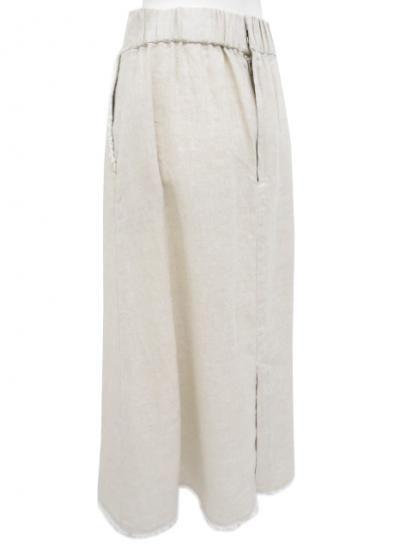 コメント 麻のナチュラルな質感を生かした涼しげなデザインで、一点投入でシーズンムードがググっと高まるAラインのロングスカートです。ヘムラインはカットオフフリンジでラフな仕上がりに。マシンウォッシャブル可能なイージーケアがうれしいポイント。ウエストは背面のみゴム仕様なので、ボトムインした時もスマートに着こなせます。裏地なし。バックファスナー+ワンフック留め。