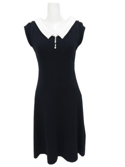 Rene ニットドレス 6022050 ネイビー×ホワイト 34 ’20年 中古A1