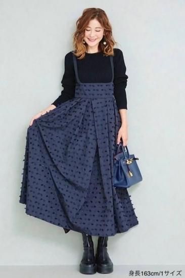 OBLI MAISON2022/オブリ 米沢別注フリンジジャンパースカート ネイビー 0 '23年 中古A1