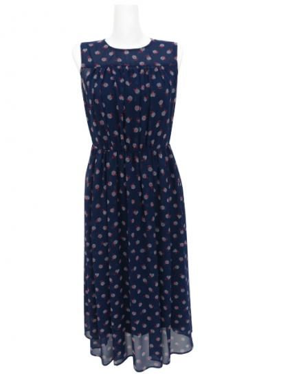 ANAYI/アナイ マリンドット プリント ギャザーフレア ワンピース ネイビー 34 '24年SS 中古A1美品