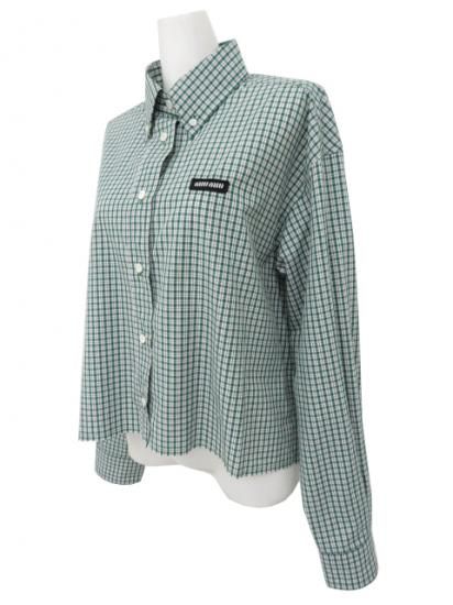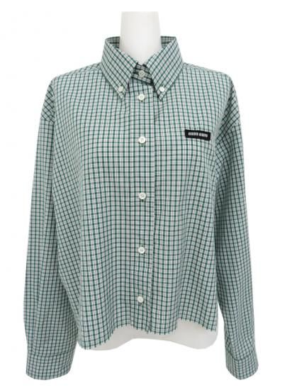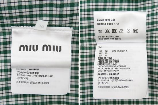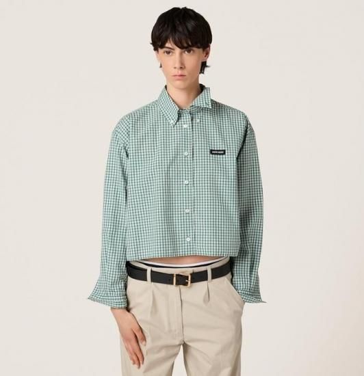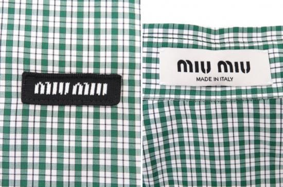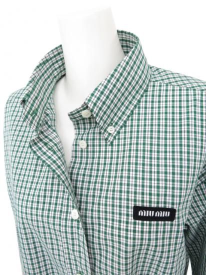 新品同様 miu miu/ミュウミュウ チェック シャツ エメラルド×ホワイト 36 '25年現行